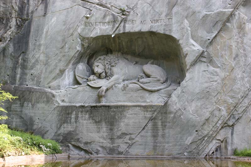 フランス革命の際、ルイ王朝側について命を落としたスイス傭兵の勇敢さを称えた「瀕死のライオンの像」