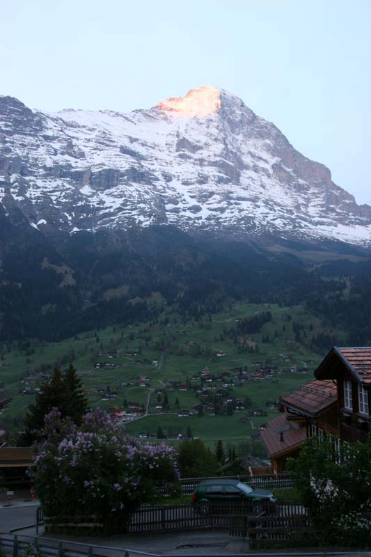 グリンデルワルトの街中から眺めたアイガー。